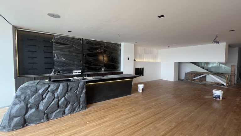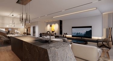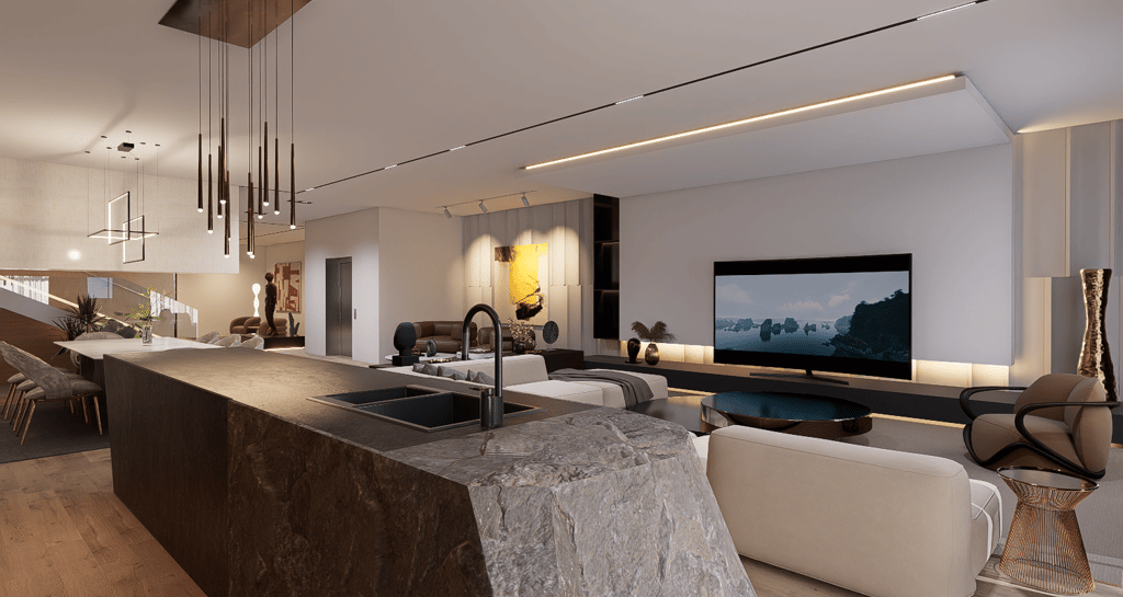 These monolithic accents along with warm, organic, and textured supplements that are tastefully echoed throughout the spaces pay homage to the motifs and patterns reminiscent of African craftmanship layered with the sophistication of modern luxury living.