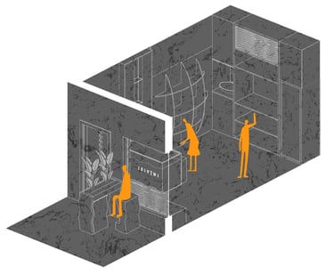 'The Squiggle' birthed from the Isivini logo enabled a visual language that echoed through the space to solidify the uniqueness and intentionality of this store design, as well as its representation of the brand.