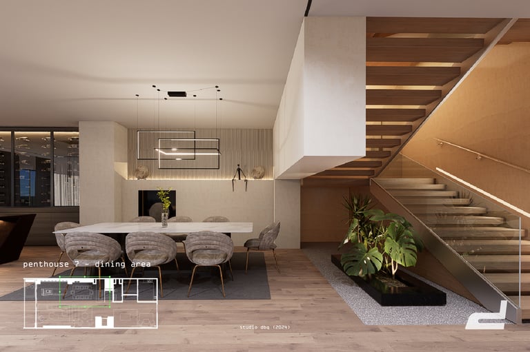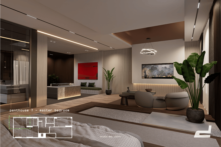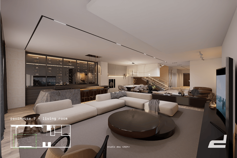 Penthouse 7, nested unto the 12th floor of the Oriental hotel, began as a proposal for the renovation of the 5-bedroom apartment.