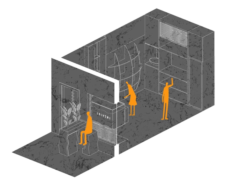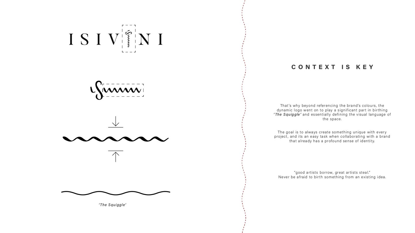 'The Squiggle' birthed from the Isivini logo enabled a visual language that echoed through the space to solidify the uniqueness and intentionality of this store design, as well as its representation of the brand.